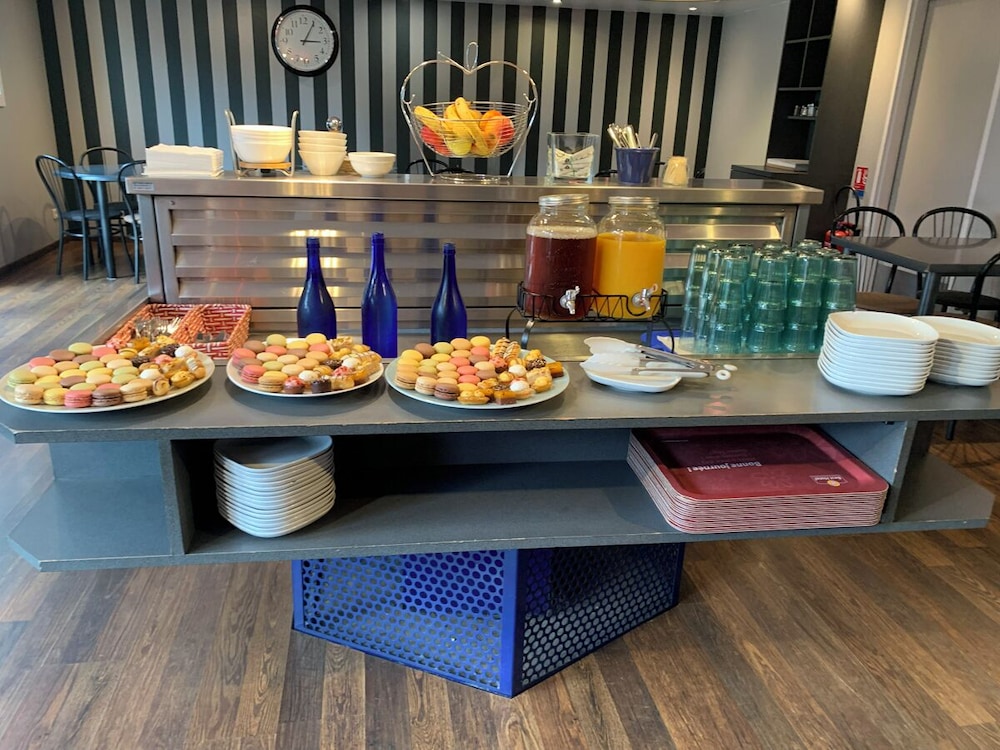 Les équipements et services proposés incluent un personnel polyglotte, une consigne à bagages et un coffre-fort à la réception. En échange d'un supplément, vous pouvez profiter des services d'une navette vers et depuis l'aéroport. De plus un parking gratuit se trouve dans l'enceinte de l'hébergement. Profitez de la vue qui vous est offerte depuis une terrasse et un jardin, sans oublier les nombreux équipements et services qui caractérisent l'hébergement, notamment l'accès Wi-Fi à Internet gratuit. Brit Hotel Baillet en France vous invite à découvrir son restaurant. L'hébergement vous invite à rejoindre son bar/salon pour une petite pause bien méritée. Un petit déjeuner buffet est servi tous les jours de 07 h 00 à 10 h 00 moyennant un supplément. Le classement officiel par étoiles de cet hébergement a été attribué par ATOUT France, l'agence de développement touristique de la France. Les installations suivantes sont fermées le vendredi, le samedi, et le dimanche :- Restaurant