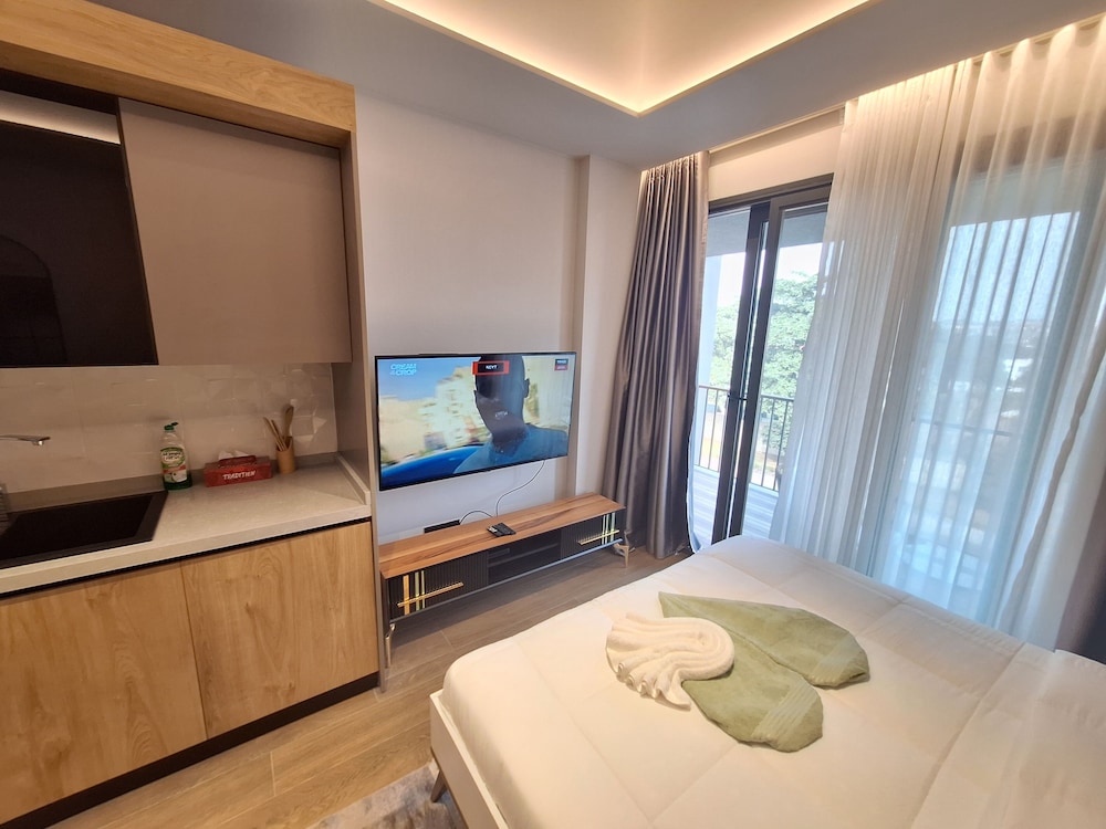 En choisissant Diamond City by Cozy, vous profiterez d'un séjour en plein centre de Accra, (Cantonments), à moins de 10 minutes en voiture de Accra Mall et Jubilee House. Cet appartement se trouve à 6,8 km de Plage de Labadi et à 1,6 km de El Wak Stadium. Passez un séjour comme il se doit dans une des 2 chambres climatisées de l'hébergement et profitez des nombreux équipements à votre disposition, notamment une kitchenette avec un grand réfrigérateur/congélateur et four. Une télévision à écran plat avec chaînes numériques assure votre divertissement, alors que l'accès Wi-Fi à Internet gratuit vous permet de rester en contact avec le monde. Les prestations offertes par l'hébergement incluent un bureau et un micro-ondes. Les distances sont affichées au dixième de kilomètre près