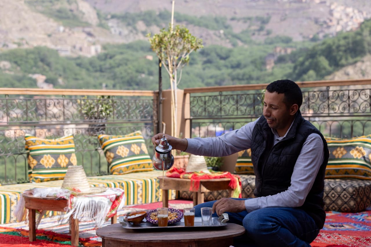 Bienvenue à l'Oasis d'Imlil, un havre de paix en montagne où la beauté époustouflante du Haut Atlas rencontre la chaleur de l'authentique hospitalité berbère. Nichée dans le charmant village d'Imlil, au pied du mont Toubkal, notre maison d'hôtes vous offre une escapade douillette et sereine, loin du tumulte du monde. Que vous soyez ici pour explorer les majestueuses montagnes ou simplement vous détendre et renouer avec la nature, nous sommes honorés de vous accueillir. Notre maison d'hôtes familiale a été soigneusement conçue dans le respect du style berbère local, avec des tons chaleureux, des touches traditionnelles et une vue imprenable sur les vallées et les sommets environnants.