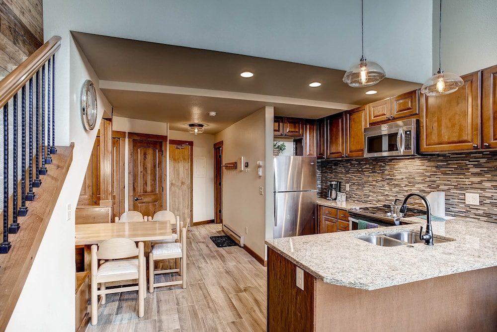 En choisissant cet appartement en copropriété, vous profiterez d'un séjour à Keystone (Lakeside Village), à moins de 15 minutes en voiture de Domaine skiable de Keystone et Arapahoe Basin Ski Area (station de sports d'hiver). Cet appartement condo avec golf se trouve à 20,8 km de Station de ski de Breckenridge et à 28,4 km de Domaine skiable de Copper Mountain. Vous vous sentirez comme chez vous dans cet appartement condo bénéficiant de la climatisation qui offre une cheminée et une télévision à écran plat. Vous trouverez un balcon ou un patio privé.Vous profiterez d'une cuisine dotée d'un grand réfrigérateur/congélateur, un four et d'une plaque de cuisson. Vous aimez rester connecté ? Vous profiterez sur place d'un accès gratuit à Internet via le Wi-Fi, mais également d'un lecteur de DVD et de chaînes par câble. L'idéal pour un séjour relaxant ! Les distances sont affichées au dixième de kilomètre près
