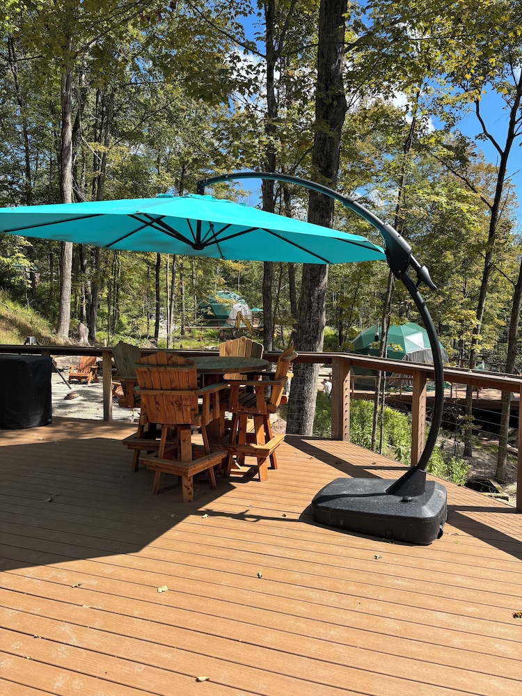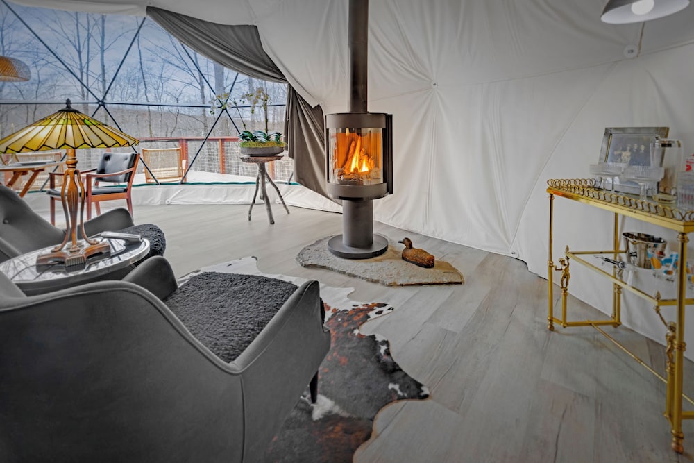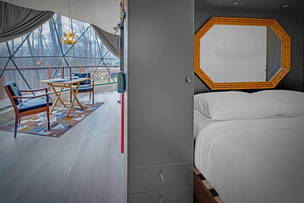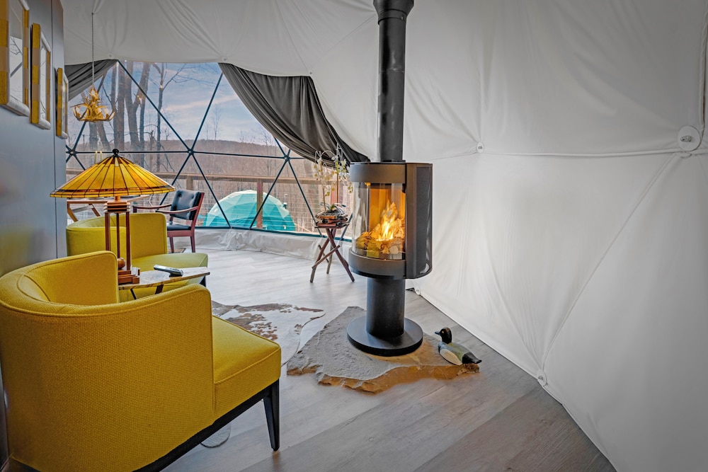 Pratique pour partir à la découverte de Swan Lake, Domes at Catskills se trouve à moins de 15 minutes en voiture de Sullivan County Golf and Country Club et Synagogue de White Sulphur Springs. Cette cabane se trouve à 15,1 km de Centre d'arts Bethel Woods Center For The Arts et à 24,1 km de Casino Resorts World Catskills. Passez un séjour comme il se doit dans une des 5 chambres avec une décoration personnalisée de l'hébergement et profitez des nombreux équipements à votre disposition, notamment une cheminée et un chauffage par le sol. Votre lit est préparé avec une couette en duvet d'oie et des draps en coton égyptien. Une cuisine privée qui comprend une plaque de cuisson, un micro-ondes et une machine à espresso est à votre disposition. L'accès Wi-Fi à Internet gratuit vous permet de rester en contact avec le reste du monde. Les distances sont affichées au dixième de kilomètre près