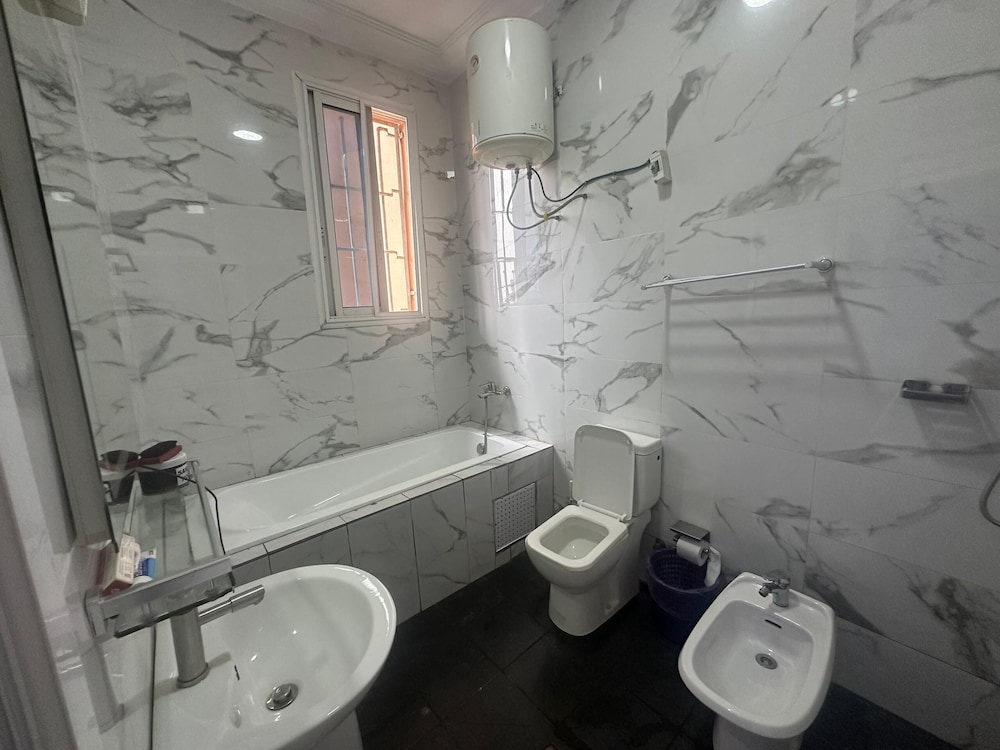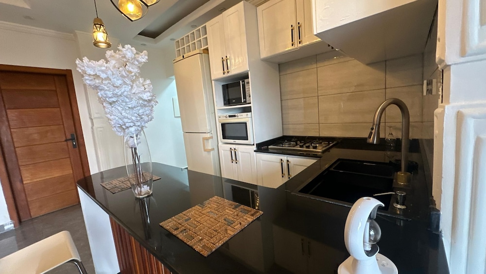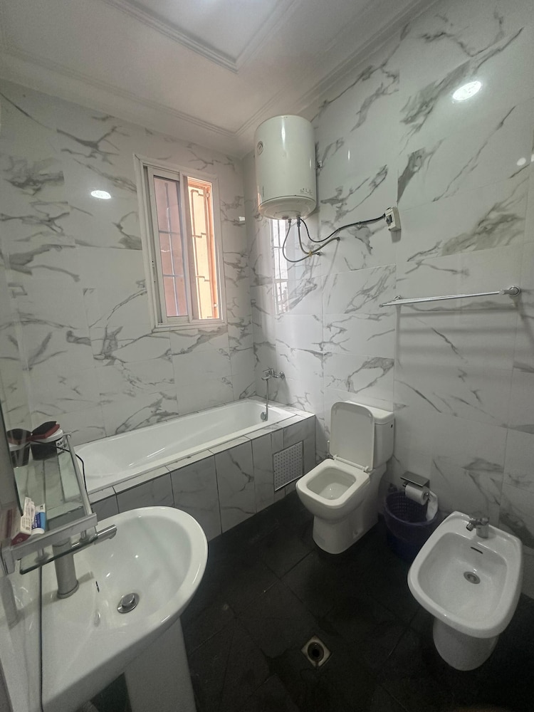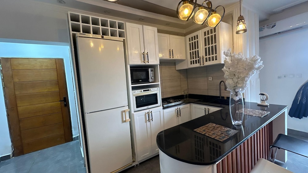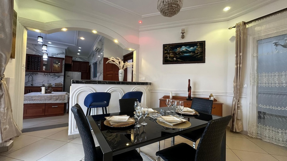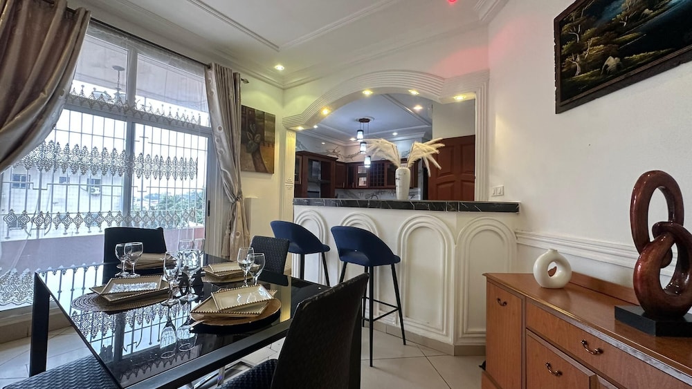 Douala ne manque pas de choses à découvrir : Tchinda Meli Residence se trouve à moins de 10 minutes en voiture de La Nouvelle Liberté et Stade de la Réunification. Cet appart'hôtel se trouve à 8,9 km de Marché d'Eko et à 9,8 km de Cathédrale de Saints-Pierre-et-Paul. Les 15 chambres de l'hébergement vous invitent à la détente. L'accès Wi-Fi à Internet gratuit vous permet de rester en contact avec le reste du monde. Le service d'entretien est assuré tous les jours, alors que d'autres équipements sont disponibles sur demande, notamment un fer / une planche à repasser. Les distances sont affichées au dixième de kilomètre près