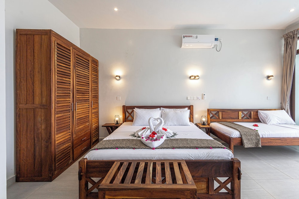 En choisissant YU Resort à Msambweni, vous profiterez d'un séjour au bord de la plage, à 23,6 km de Plage de Diani et à 14,6 km de Kaya Kinondo Sacred Forest. Cet hôtel au bord de la plage se trouve à 15 km de Plage de Funzi et à 17,1 km de Plage de Chale. Passez un séjour comme il se doit dans une des 29 chambres avec un ameublement personnalisé de l'hébergement et profitez des nombreux équipements à votre disposition, notamment une piscine privée et une TV connectée. Les chambres sont dotées d'un balcon. L'accès Wi-Fi à Internet gratuit vous permet de rester en contact avec le reste du monde et votre divertissement est assuré par des chaînes numériques. Les équipements et services offerts par l'hébergement comprennent un coin salon séparé et de l'eau minérale (offerte). Le service d'entretien est assuré tous les jours. Les distances sont affichées au dixième de kilomètre près