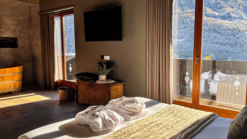 Pratique pour explorer Piateda, Agarthi Suites vous fait profiter à la montagne et se trouve à moins de 10 minutes en voiture de Musée d'histoire et d'art de Valteline et Château de Grumello. Cet affittacamere avec golf se trouve à 19,8 km de Chemin de fer de la Bernina et à 7,7 km de Musée et château de Masegra. Passez un séjour comme il se doit dans une des 5 chambres avec une décoration personnalisée de l'hébergement et profitez des nombreux équipements à votre disposition, notamment une cheminée et une télévision à écran plat. Votre lit en mousse à mémoire de forme est préparé avec une couette en duvet d'oie et de la literie de qualité supérieure. L'accès Wi-Fi à Internet gratuit vous permet de rester en contact avec le reste du monde et votre divertissement est assuré par des chaînes numériques. Les équipements et services offerts par l'hébergement comprennent un coffre-fort et un bureau. Le service d'entretien est assuré une fois par séjour. Les distances sont affichées au dixième de kilomètre près