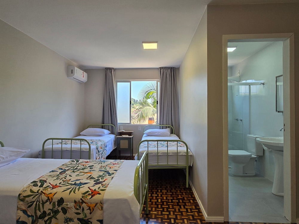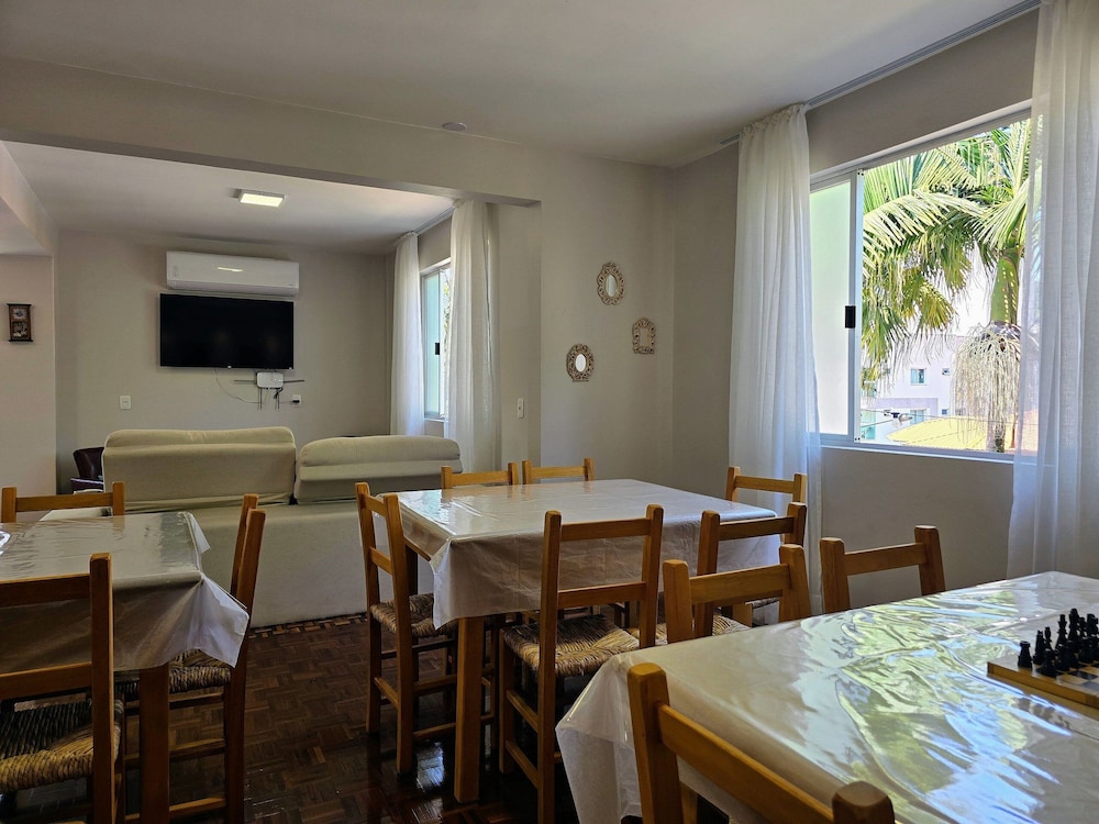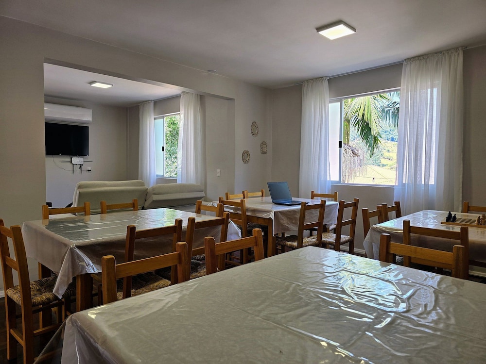 Piratuba ne manque pas de choses à découvrir : Casa das Palmeiras vous fait profiter d'un séjour en bord de rivière et se trouve à moins de 5 minutes en voiture de Paroisse Santa Catarina et Place Ferroviario. Cette maison de vacances se trouve à 2,2 km de Église Confissao Luterana no Brasil et à 25,6 km de Parc aquatique Termas Marcelino Ramos. Les 7 chambres de l'hébergement vous invitent à la détente et comprennent un minibar. Profitez de la cuisine commune/partagée pour préparer vos repas ! L'accès Wi-Fi à Internet gratuit vous permet de rester en contact avec le reste du monde. Les salles de bain comprennent une douche et des articles de toilette gratuits. Les distances sont affichées au dixième de kilomètre près