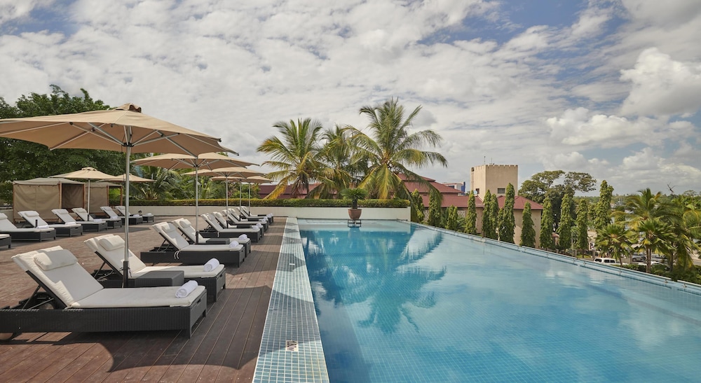 Les équipements et services proposés incluent l'accès à internet gratuit à Internet, un centre d'affaires et des journaux gratuits dans le hall. Si vous devez organiser une réunion à Dar es Salaam, faites confiance à cet hôtel qui dispose d'espaces événements mesurant 830 mètres carrés et comprenant un espace de conférence et des salles de réunion. En échange d'un supplément, l'hébergement propose une navette vers et depuis l'aéroport (24 h/24) et un parking gratuit se trouve dans l'enceinte de l'hébergement. Rejoignez le spa de l'hébergement, un centre bien-être qui propose des massages, des soins corporels et des soins du visage, et permettez qu'on prenne soin de vous. Si vous mettez la détente avant toute autre chose, n'hésitez pas à profiter des nombreuses infrastructures de loisirs proposées par l'hébergement et qui incluent notamment un centre de remise en forme, une piscine extérieure et un bain à remous. Parmi les équipements et services offerts par cet hôtel vous trouvez également l'accès Wi-Fi à Internet gratuit, un service de conciergerie et un salon de coiffure. Pendant votre séjour, vous vous régalerez à The Palm, l'un des 2 restaurants de cet hôtel et profiterez d'un service d'étage 24 h/24. Idéal pour une soirée cocooning pleine de saveurs ! Si vous avez envie de vous détendre devant un petit verre, pas de panique, l'hébergement abrite un bar / salon et un bar en bord de piscine. Un petit déjeuner complet gratuit est servi en semaine de 06 h 30 à 10 h 30 et le week-end de 06 h 30 à 11 h 00.Vous devrez payer les frais suivants à l’hébergement. Ces frais peuvent comprendre les taxes applicables :