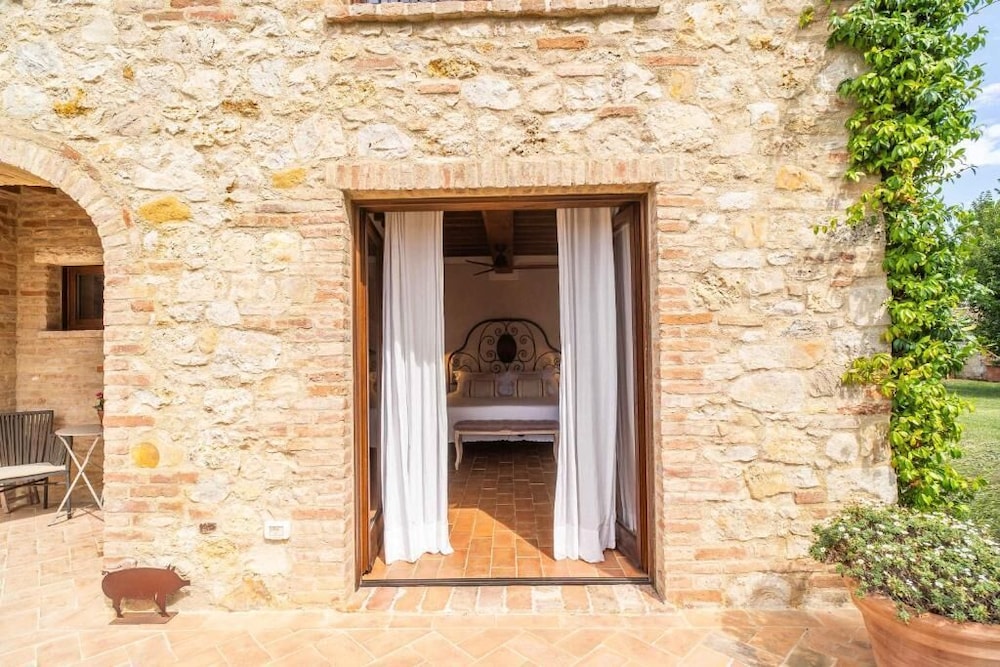 En choisissant Agriturismo SOLE à Trequanda, vous profiterez d'un agréable séjour à juste quelques pas du site Val di Chiana et à 4 min en voiture du site Église dei Santi Pietro e Andrea. Ce gîte rural de luxe se trouve à 11,6 km de Musée Cassioli et à 11,8 km de Crêtes siennoises. Choisissez une des 7 chambres climatisées de l'hébergement et profitez des nombreux services et équipements à votre disposition, notamment un chauffage par le sol et une télévision LED. Votre lit est préparé avec une couette en duvet d'oie et de la literie de qualité supérieure. L'accès Wi-Fi à Internet gratuit vous permet de rester en contact avec le reste du monde. Les équipements et services offerts par l'hébergement comprennent une cafetière ou une bouilloire et de l'eau minérale (offerte). Le service d'entretien est assuré sur demande. Les distances sont affichées au dixième de kilomètre près