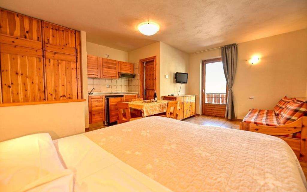 The apartments are equipped with an equipped kitchenette, living room with sofa bed, private bathroom with shower, balcony, telephone, heating, water, gas and electricity consumption, bed linen, cot service. The two-room apartments have a separate bedroom with a bunk bed.