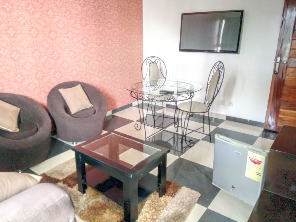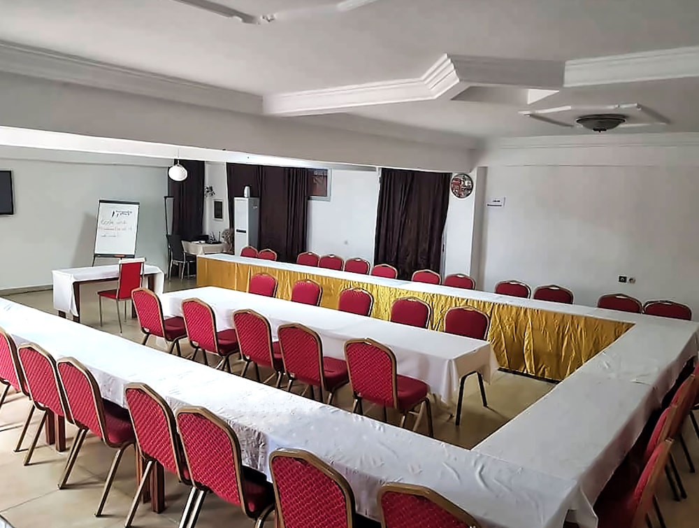 Pratique pour explorer Yamoussoukro, Résidence Bérah - Complexe Hôtelier vous fait profiter dans le quartier des affaires et se trouve à moins de 10 minutes en voiture de Palais Présidentiel et Stade Charles Konan Banny. Choisissez une des 70 chambres dotées d'une télévision LED. L'accès Wi-Fi à Internet gratuit vous permet de rester en contact avec le reste du monde et votre divertissement est assuré par des chaînes par satellite. Une douche est disponible dans la salle de bain. Les équipements et services offerts par l'hébergement comprennent un téléphone et des rideaux occultants. Le service d'entretien est assuré tous les jours. Les distances sont affichées au dixième de kilomètre près